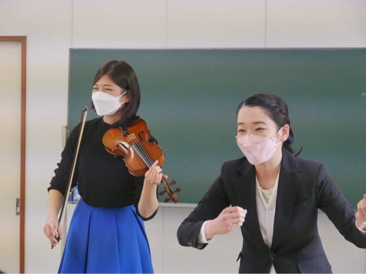 宮城嶋遥加さん、小沢実々子さんの母校、清水南高等学校で、在校生に『シベリアのバイオリン』の朗読とピアノ演奏。著者の挨拶。